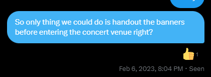 12 February, before 3:00 pm: The bouncers were already commanding Moos to proceed inside Yellow Gate when our admin received information from a WL staff that they already coordinated with the security team to honor our UQN. Our admin talked with the head of security and waited for this info from WL to reach him. However, our admin received no update from WL after 5 minutes and left Yellow Gate to assist other volunteers. At this point, the UQN was disregarded, but banners were still distributed for Moos.