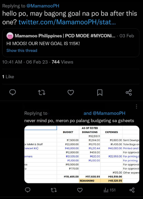 As for the posting of receipts, we understand that the funds we are handling are from moos and we give great importance to the funds. Time and patience were all we asked of our fellow moos who questioned MMMPH starting a few days after con day and demanded that the report be updated immediately.