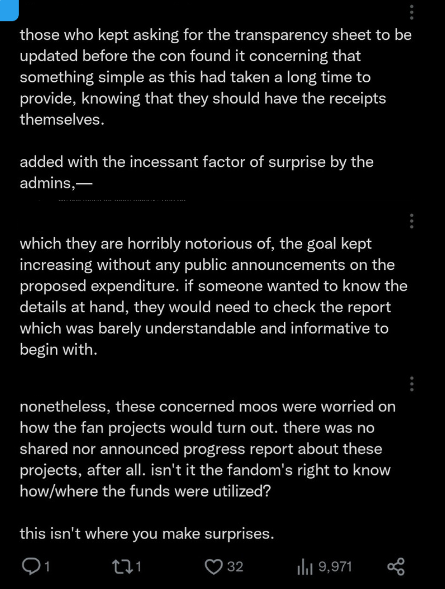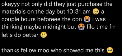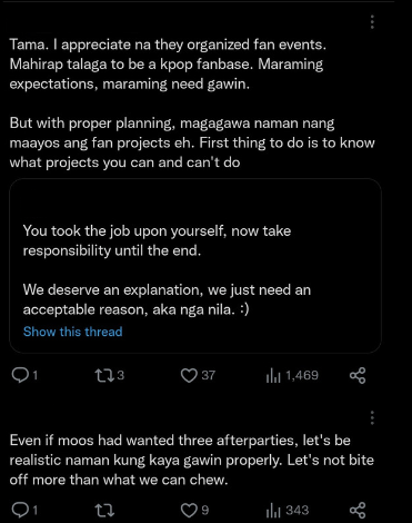We admit that what OP said in this tweet is true. With fewer staff and volunteers and more projects planned, we have overcommitted and stretched our manpower too thin, to the point that it has become quantity over quality. Our only intention was to please Moos who were requesting more after-parties, and this resulted in our events being disappointments to attendees. And for that, we are truly sorry.